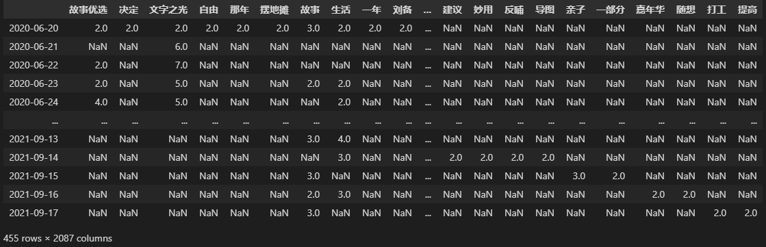 我最終得到的結果是一個 455 行,2087 列的 DataFrame。