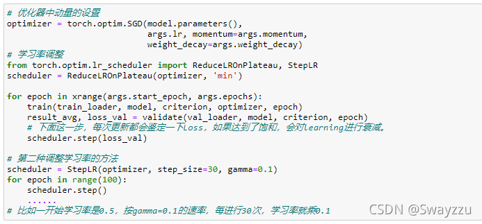 學(xué)習(xí)率的調(diào)整通過(guò)torch.optim.lr_scheduler中的ReduceLROnPlateau,StepLR實(shí)現(xiàn)。
