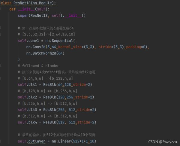 此處的ResNet18并沒有涉及到太多細節(jié),只是一個大致的內容。