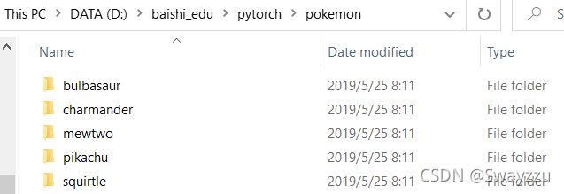 5個文件夾,每個文件夾是神奇寶貝的一種。