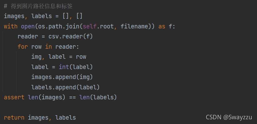 以上是保存的部分,在這個函數(shù)中,我們還要重新讀取一下這個文件,因?yàn)橐谶@個類中獲得最終的圖片,以及標(biāo)簽,并且返回。