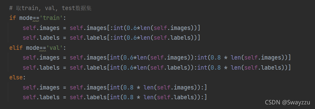 這里是第一步的圖片的后半部分,導(dǎo)入了圖片之后,對其進(jìn)行分割,這里是按照訓(xùn)練、交叉驗(yàn)證、測試,分別是0.6,0.2,0.2進(jìn)行分割的。