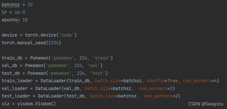 同時把GPU設(shè)備相關(guān)代碼準(zhǔn)備好,并且由于需要可視化,因此先實(shí)例化visdom,并且在終端上輸入python -m visdom.server,打開visdom監(jiān)視終端。