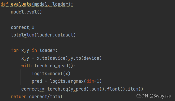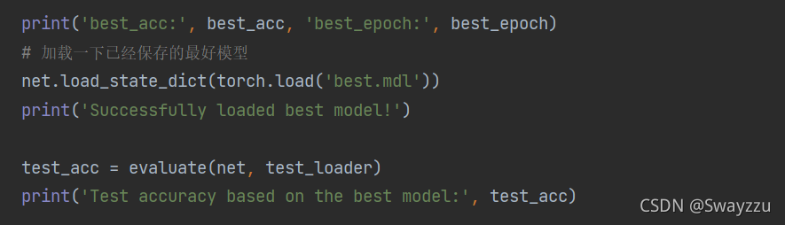 先把模式改為eval(),接下來就是通過model,去訓(xùn)練測試集,得到標(biāo)簽,并統(tǒng)計(jì)正確率。