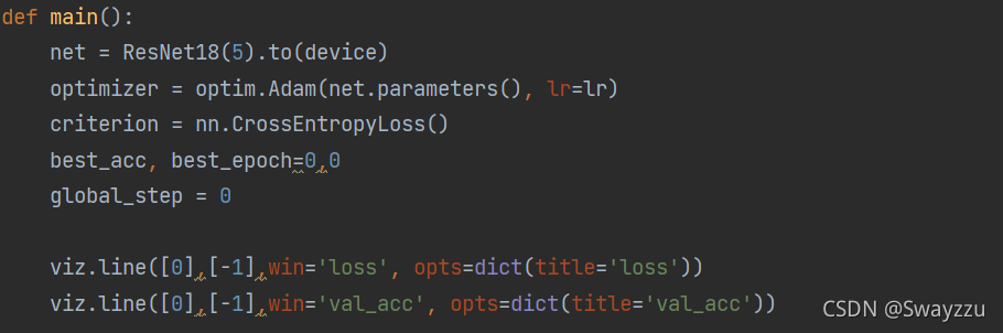 和之前的一樣,還是先實(shí)例化一個優(yōu)化器,選擇損失函數(shù)模式,實(shí)例化ResNet18,然后進(jìn)行訓(xùn)練。