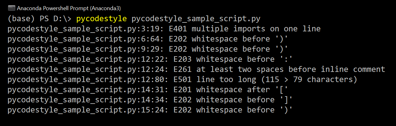 最直接的用法是在 Python 腳本(.py文件)上作為命令在終端中運行pycodestyle。