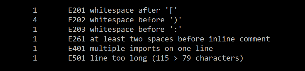 pycodestyle --statistics -qq pycodestyle_sample_script.py