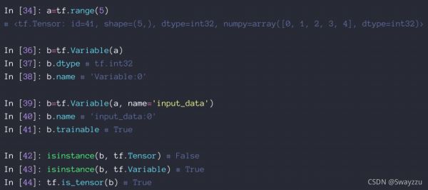注意:在深度學習中,是需要對參數(shù)求梯度的,需要variable包裝一下,就擁有了trainable屬性,這樣就才求梯度。假如是自己寫傳播過程,更新后的參數(shù)也需要用variable包裝。