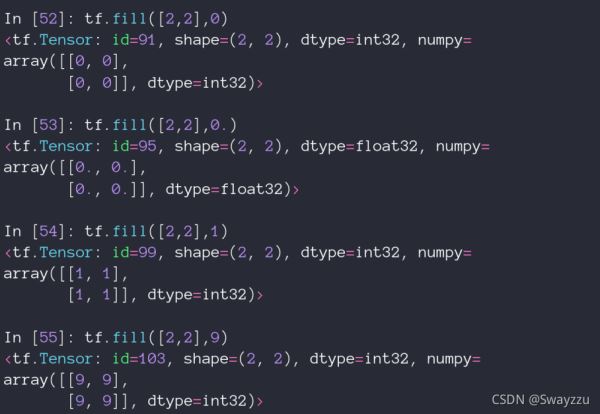 tf.zeros_like和pytorch功能一樣,傳入有某個shape的數(shù)據(jù),會生成和那個shape一樣的zeros數(shù)據(jù)。tf.ones, tf.ones_like和你想的一樣。