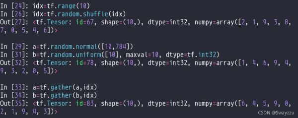 隨機打散,可以打散一個索引順序,通過tf.gather去對應(yīng),這樣可以實現(xiàn)兩個同樣行數(shù)的數(shù)據(jù),進行索引一一對應(yīng)的隨機打散。