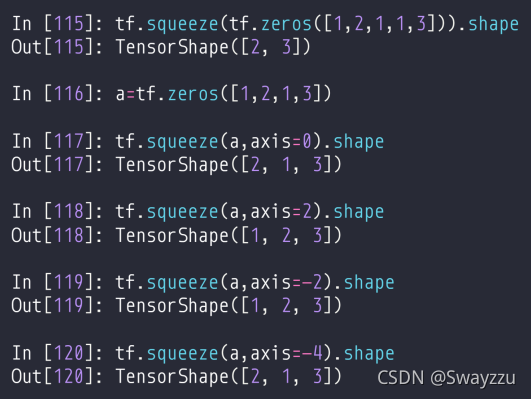 可以去掉為1的維度。不指定維度的話就去掉所有的為1的維度。