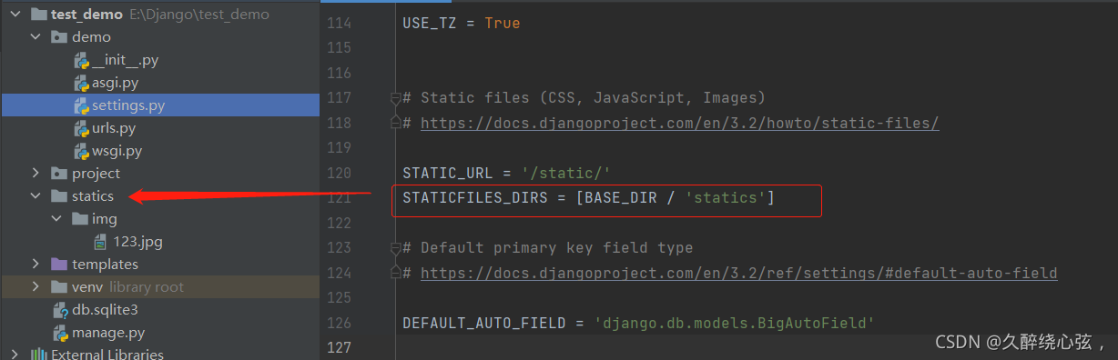 首先在項(xiàng)目根目錄下創(chuàng)建存放靜態(tài)文件的目錄,并在settings中設(shè)置路徑,如下: