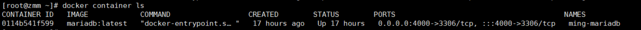 d:后臺運行容器mariadb并返回容器id