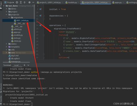 生成數(shù)據(jù)遷移記錄 python manage.py makemigrations projects