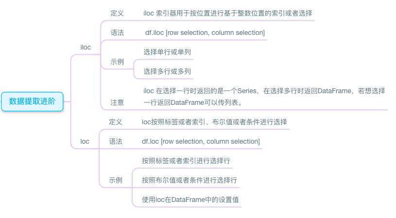 iloc選擇一行時(shí)返回Series,選擇多行返回DataFrame,通過(guò)傳遞列表可轉(zhuǎn)為DataFrame。