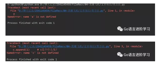 a # 孤單單一個(gè)a,什么也表示不了,只能報(bào)錯(cuò) a = 1# 這樣就沒(méi)問(wèn)題了,解釋器知道a是個(gè)新變量了 c.append(1) # c是個(gè)什么鬼? NameError: name 'c' is not defined