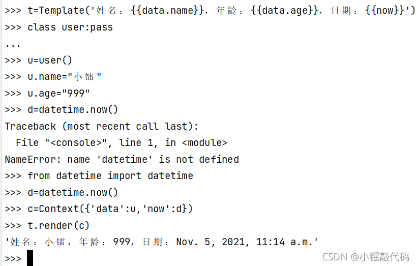 c={'name':"小鐳",'age':999,'now':time}