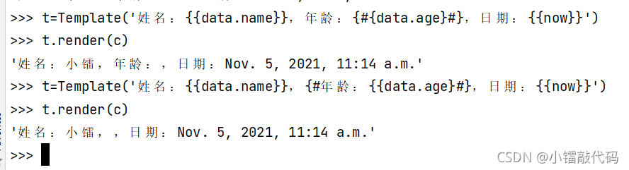 模板中年齡和日期被包含在注釋中,在渲染時(shí)會(huì)被忽略。例如,在視圖中使用該模板的示例代碼