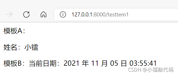 模板A:{%include 'testtem.html' with name='小鐳'%}