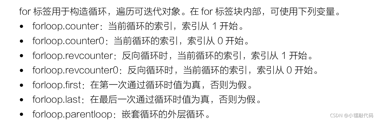 對(duì)于包含子列表的列表變量,for標(biāo)簽可將子列表映射到獨(dú)立變量,