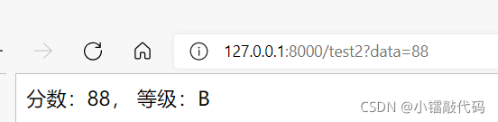 運(yùn)在瀏覽器中訪問(wèn) “http://127.0.0.1:8000/test2?data=88”,輸出結(jié)果如圖所示