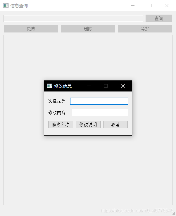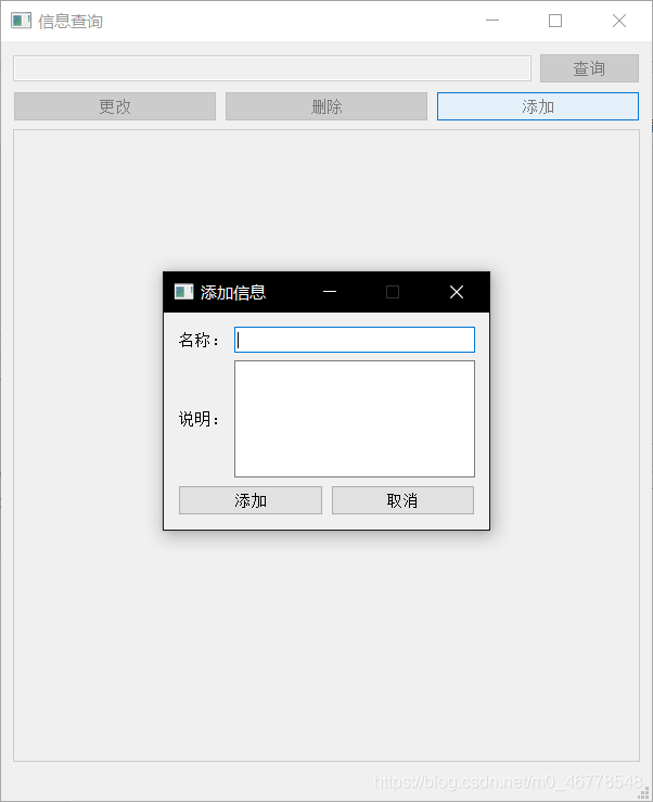 1.添加數(shù)據(jù)的信號(hào),當(dāng)按下添加按鈕,這個(gè)界面向主界面?zhèn)鬏攦蓚€(gè)字符串