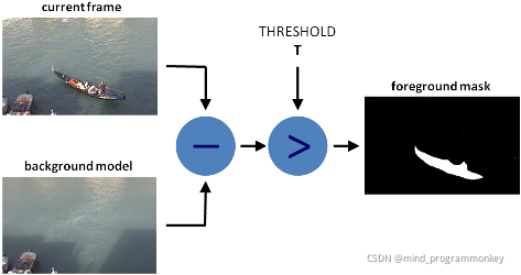- 背景減法 (BS) 是一種常用且廣泛使用的技術(shù),用于通過使用靜態(tài)相機(jī)生成前景蒙版(即,包含屬于場景中運動物體的像素的二值圖像)。