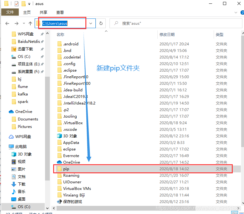 進(jìn)入相應(yīng)目錄下 C盤->Users/用戶->xxx->新建pip文件夾