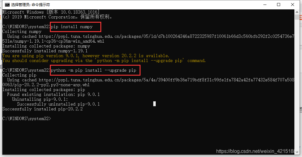 pip install -i http://pypi.douban.com/simple/ numpy #如果上一個(gè)提示不受信任,就使用這個(gè),此參數(shù)“--trusted-host”表示信任 pip install -i http://pypi.douban.com/simple/--trusted-host pypi.douban.com