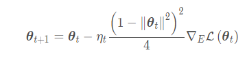 由于是將歐氏空間計(jì)算得到的梯度在黎曼空間中進(jìn)行迭代,由上文的(1)式,我們有: