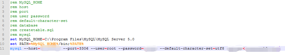 windows下bat批處理執(zhí)行Mysql的sql語句