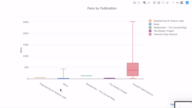 就拿博客文章點(diǎn)贊總數(shù)為例(原始數(shù)據(jù)見(jiàn) Github:https://github.com/WillKoehrsen/Data-Analysis/tree/master/medium ),做一個(gè)簡(jiǎn)單的交互式柱狀圖:
