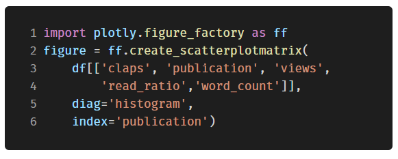 本文中的所有可視化圖表都是在 Jupyter Notebook 中使用離線模式的 plotly + cufflinks 庫(kù)完成的。在使用 pip install cufflinks plotly 完成安裝后,你可以用下面這樣的代碼在 Jupyter 里完成導(dǎo)入: