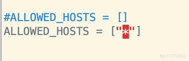 進入到HelloDjango中我們修改下settings.py文件中允許被訪問的主機,如果不修改默認只允許127.0.0.1本機回環(huán)地址,這對我們web應(yīng)用來說沒有意義,因此我們需要修改ALLOWED_HOSTS默認允許的主機改為"*"即可