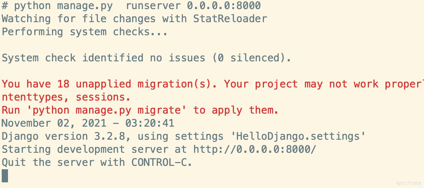 安裝完成之后,我們需要在pyenv環(huán)境里面更新下數(shù)據(jù)庫,就可以使用django的相關(guān)命令