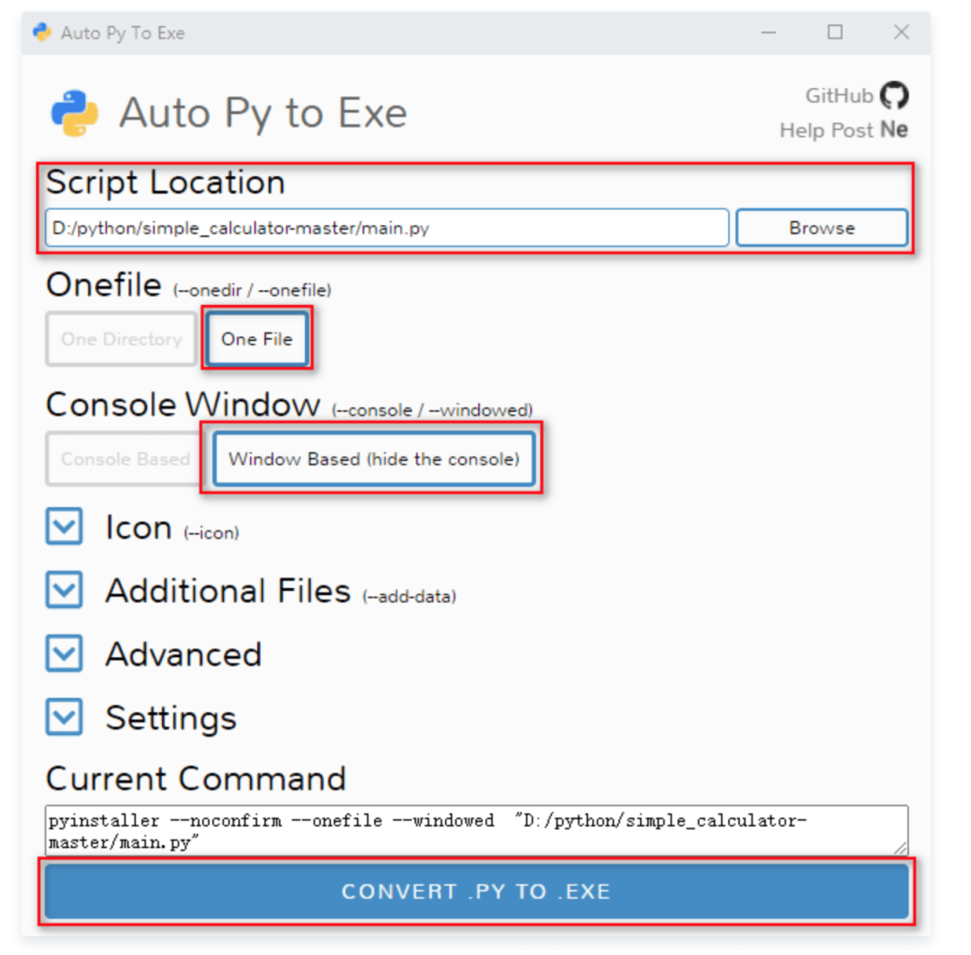 auto-py-to-exe 打包程序主要分 3 部分,分別是: