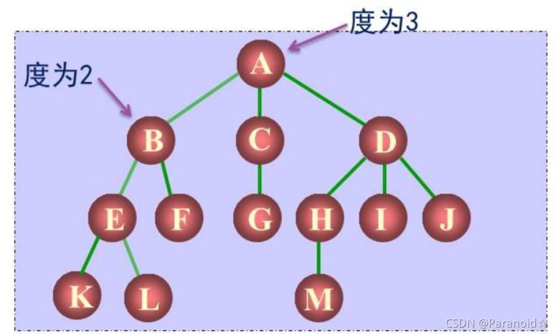 A的度為3,同時(shí)也是樹的度,B的度為2