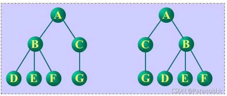 無序樹:樹中結(jié)點(diǎn)的各子樹從左至右是無次序的,可以互換