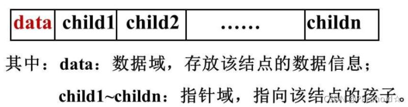 鏈表中的每個(gè)節(jié)點(diǎn)包含一個(gè)數(shù)據(jù)域和多個(gè)指針域,每個(gè)指針域指向該節(jié)點(diǎn)的一個(gè)孩子節(jié)點(diǎn)
