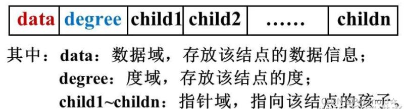 指針域的個(gè)數(shù)等于該結(jié)點(diǎn)的度