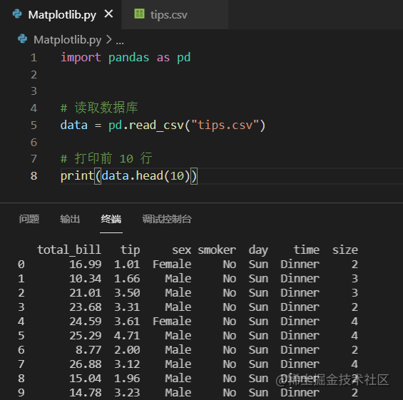 在深入研究這些庫(kù)之前,首先,我們需要一個(gè)數(shù)據(jù)庫(kù)來(lái)繪制數(shù)據(jù)。我們將在本完整教程中使用 tips database。讓我們討論一下這個(gè)數(shù)據(jù)庫(kù)的簡(jiǎn)介。