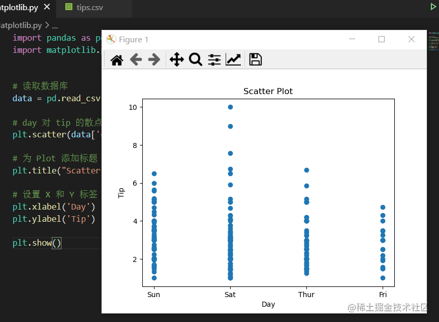 散點(diǎn)圖用于觀察變量之間的關(guān)系,并用點(diǎn)來(lái)表示它們之間的關(guān)系。matplotlib 庫(kù)中的scatter()方法用于繪制散點(diǎn)圖。