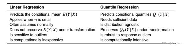 下表總結(jié)了線性回歸和分位數(shù)回歸之間的一些重要區(qū)別: