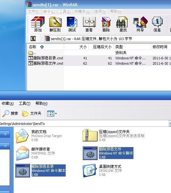 2、到vhost-del-sendto.rar下載工具包,并解壓到Sendto目錄下。到此環(huán)境搭配完畢,關(guān)閉即可。
