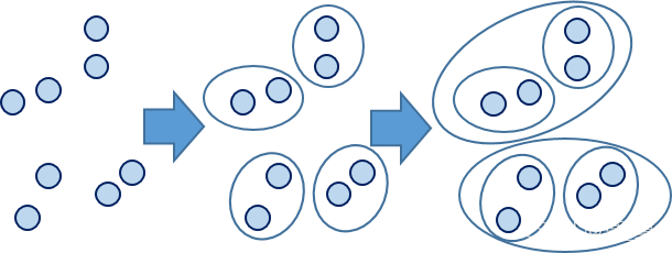 顧名思義,層次聚類就是一層一層的進行聚類,可以由上向下把大的類別(cluster)分割,叫作分裂法;也可以由下向上對小的類別進行聚合,叫作凝聚法;但是一般用的比較多的是由下向上的凝聚方法。