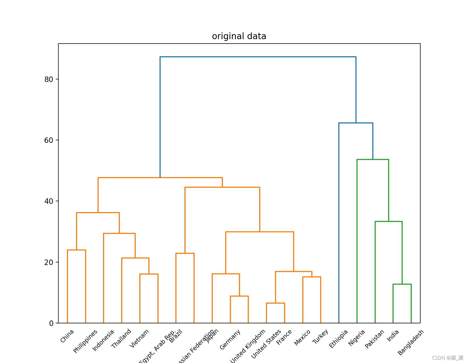 cluster 1 : China United States Indonesia Brazil Russian Federation Japan Mexico Philippines Vietnam Egypt, Arab Rep. Germany Turkey Thailand France United Kingdom cluster 2 : India Pakistan Nigeria Bangladesh cluster 3 : Ethiopia
