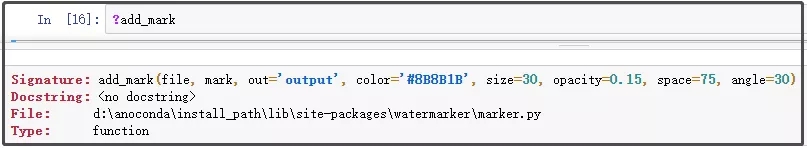 add_mark()方法一共有8個參數(shù),如果你不知道怎么查看參數(shù),在jupyter notebook可以輸入如下命令,即可查看。