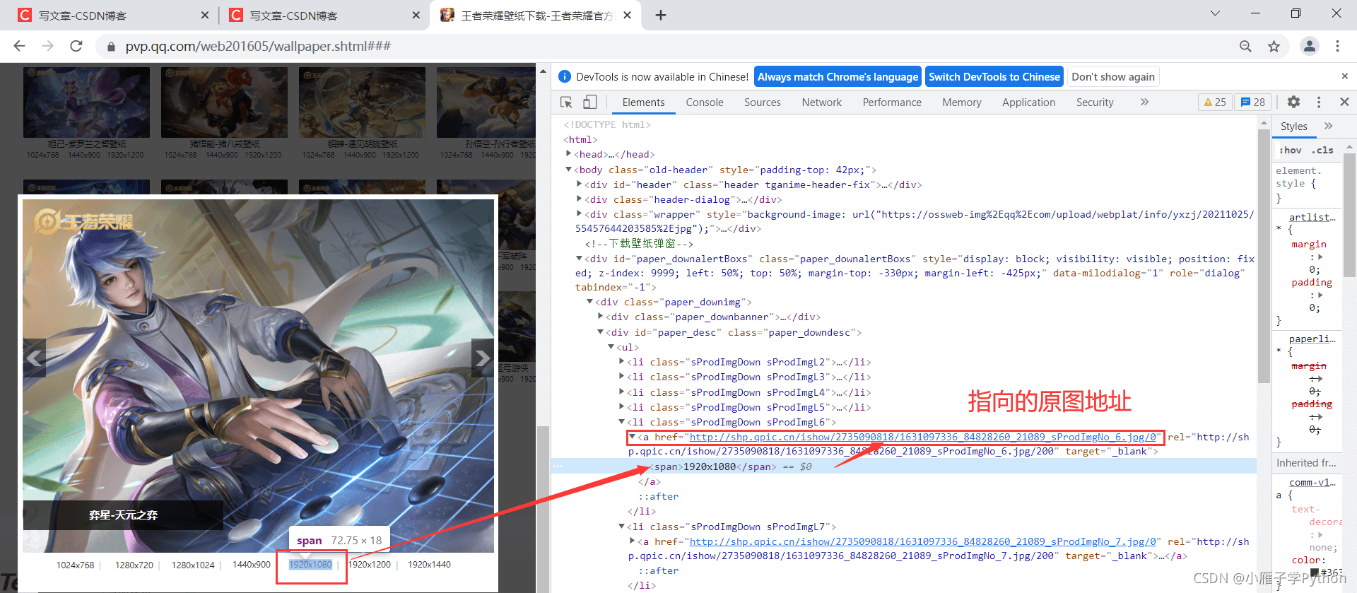 7、那就去分析網(wǎng)站,隨便點開一張壁紙,查看指定格式的鏈接