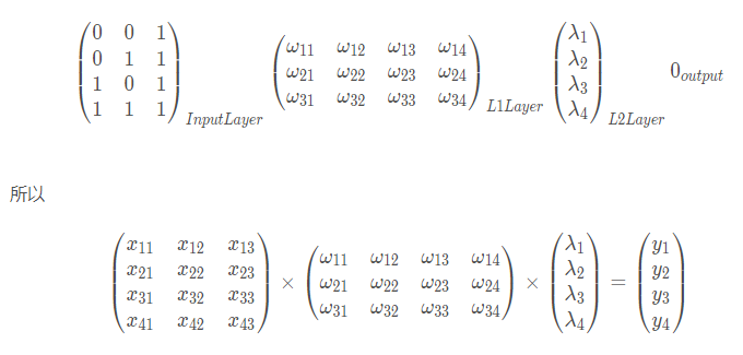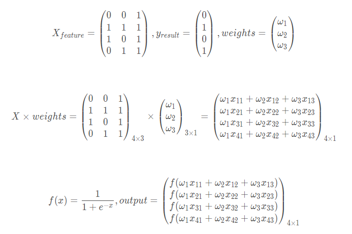 X= array ( [ [0,0,1],[1,1,1],[1,0,1],[0,1,1]]) y = array( [ [0,1,1,0]]).T ## T means "transposition"