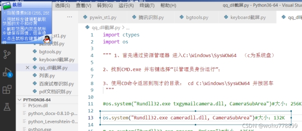 想弄個截屏工具,整理一下學(xué)生錯題什么的,原來用的方法是:先運行QQ,再監(jiān)聽鍵盤熱鍵(“ctrl+alt+a”)。后來發(fā)現(xiàn)有些問題:需要先上QQ,不能單獨實現(xiàn);監(jiān)聽時掛起,